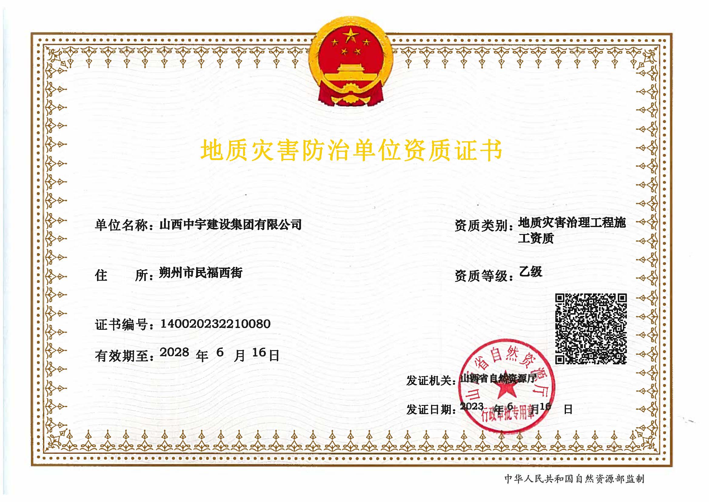 地質(zhì)災(zāi)害治理工程施工乙級資質(zhì)
